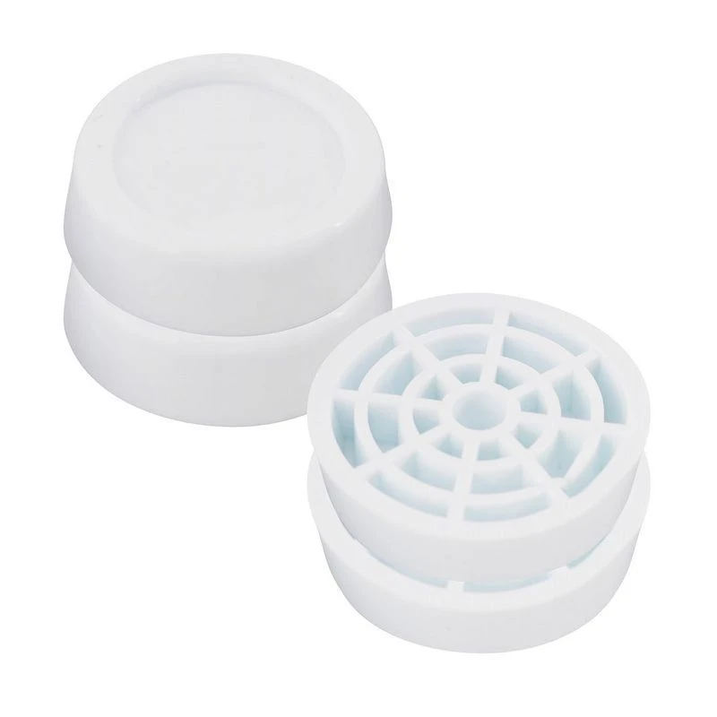 Применение подставок позволяет значительно снизить нагрузку ножек техники на напольное покрытие, керамическую плитку, деревянные полы, а также предотвращает скольжение стиральной машины при работе в режиме отжима. Снижения вибрации при работе техники достигается оптимальной формой подставок и использованием высокопрочного материала.