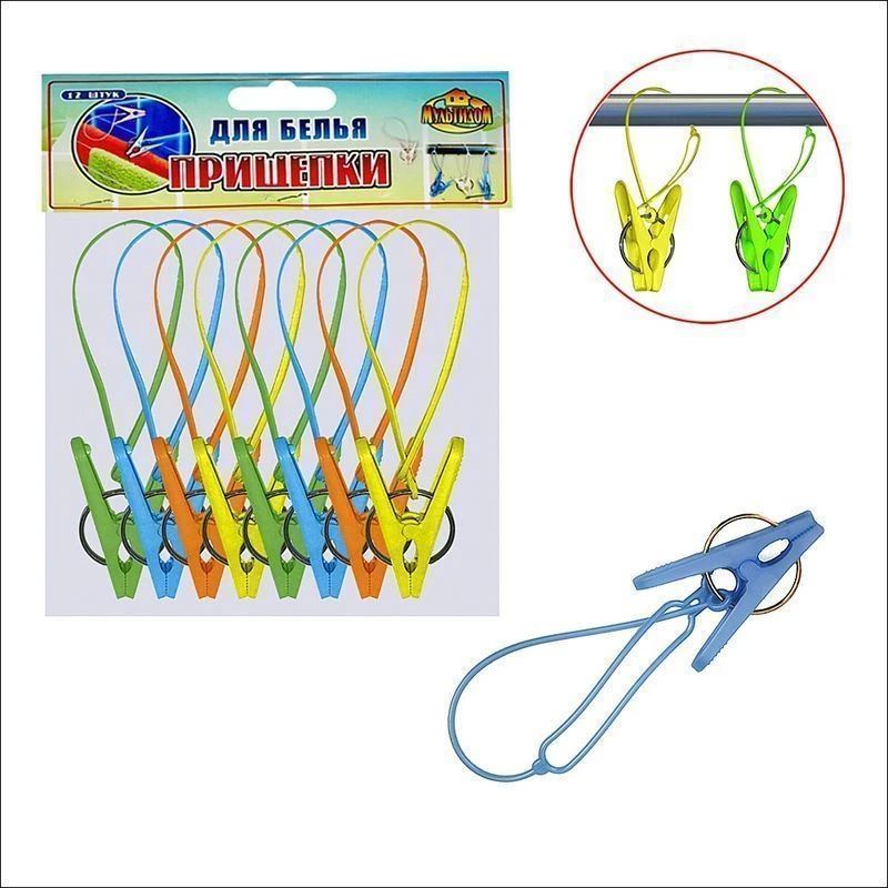Для просушивания белья на балконе, на улице или в помещении используйте удобные прищепки с петлей. Наличие петли позволяет развешивать белье на карнизе в ванной комнате, на перекладинах. Можно сушить предметы обычным способом, фиксируя прищепки на бельевой веревке. Приспособления изготовлены в ярком дизайне, удобны в использовании. Простота, надежность, стойкость к воздействию влаги являются несомненными достоинствами этих изделий. Изготовлено: корпус и петля из пластмассы (полипропилен), скоба из стали.