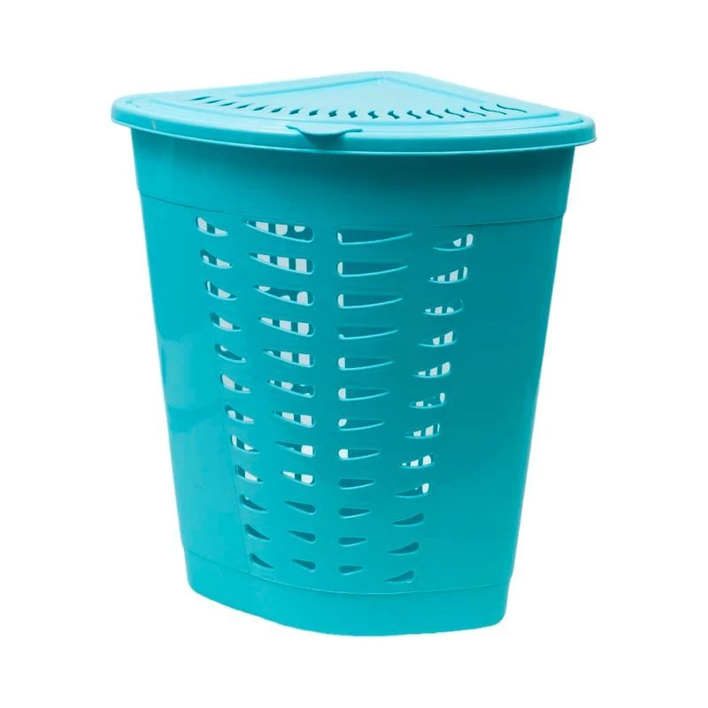 Угловая корзина изготовлена из прочного пластика и отлично подойдет для хранения белья перед стиркой. Данное изделие оснащено крышкой, что поможет скрыть содержимое корзины. У корзины есть небольшие отверстия, которые создают идеальные условия для проветривания. Удобная и компактная корзина прекрасно впишется в интерьер любой ванной комнаты.