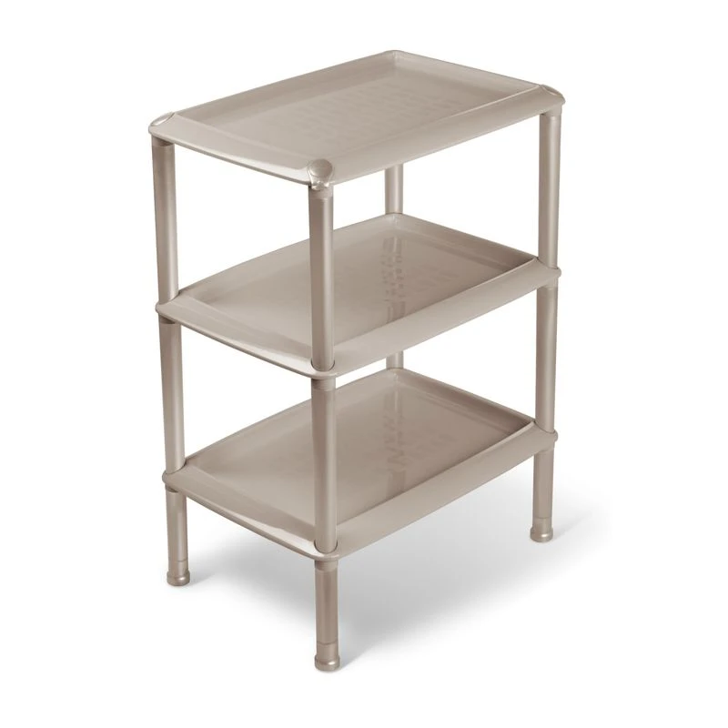 Этажерка позволит организовать пространство в небольшом помещении, например в прихожей или ванной. Пластик хорошо переносит влажность. Ухаживать за ним также легко - очистить поверхность полок можно при помощи обычных моющих средств без применения абразивных материалов. Нескользящая поверхность и бортики по краям полок обеспечат устойчивость размещенных предметов. Для удобного перемещения по комнате этажерка снабжена колесами. Рекомендуемая общая нагрузка на этажерку до 8 кг.
