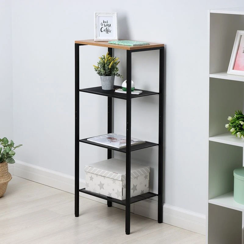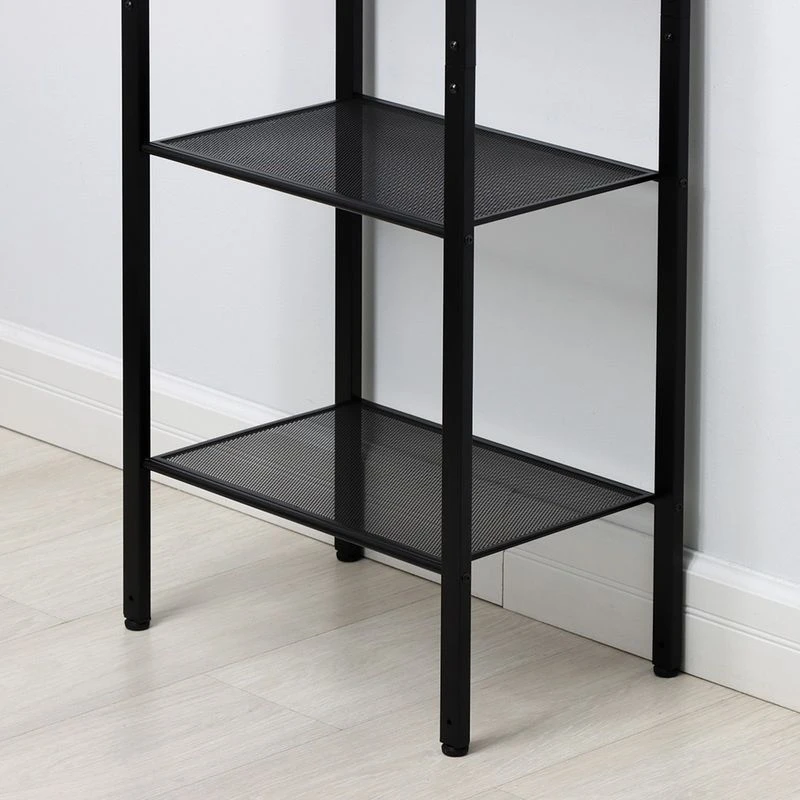 Открытый комнатный стеллаж на регулируемых ножках имеет надежные крепления.