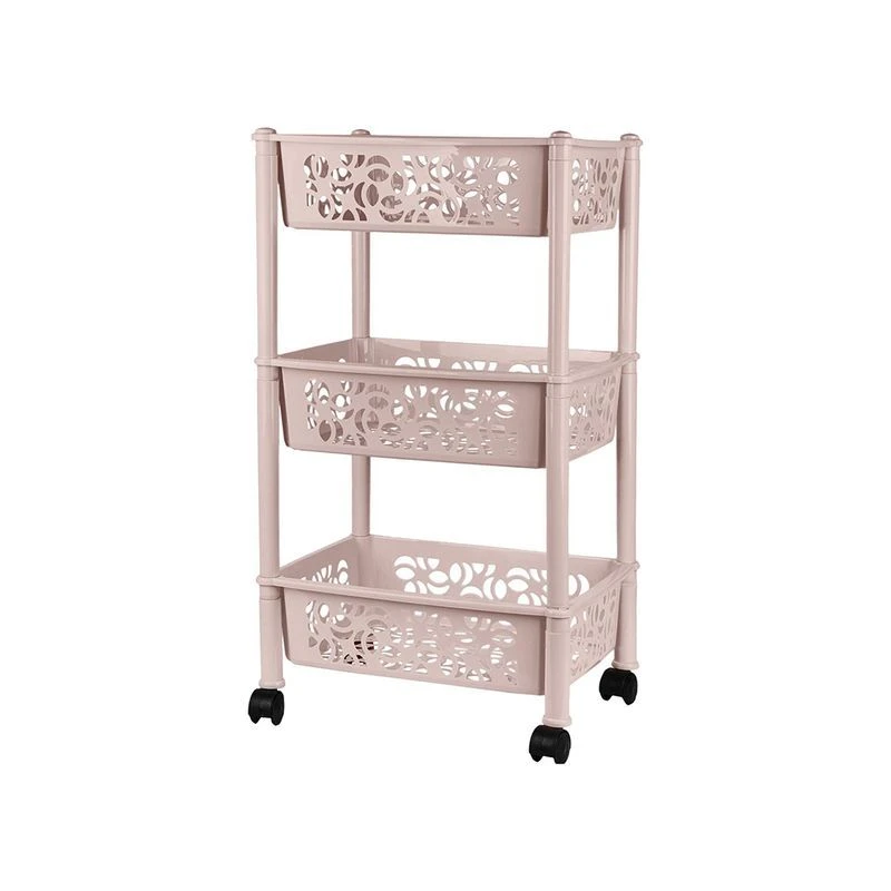 Прямоугольная этажерка -это эффективное и недорогое решение для организации хранения в небольших помещениях, на кухне, в ванной, на балконе или лоджии, в кладовой или на даче. Отличительная особенность этажерки - высокие бортики, которые позволят сохранить вещи в безопасности. Напольная этажерка состоит из трех полок. Габариты этажерки в собранном виде 370х290х690 мм, она собирается без инструментов за несколько минут, достаточно соединить стойки и полки, вставить ножки и заглушки. На нижних ножках предусмотрены колесики, ее легко выдвигать и устанавливать на место.