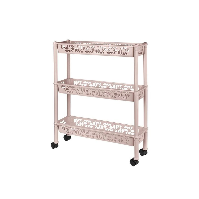 Прямоугольная этажерка - это эффективное и недорогое решение для организации хранения в небольших помещениях, на кухне, в ванной, на балконе или лоджии, в кладовой или на даче. Отличительная особенность этажерки - она узкая и вытянутая, отлично экономит пространство, ее ширина всего 18 см. Напольная этажерка состоит из трех полок с небольшими бортиками. Габариты этажерки в собранном виде 580х180х690 мм, она собирается без инструментов за несколько минут, достаточно соединить стойки и полки, вставить ножки и заглушки. На нижних ножках предусмотрены колесики, ее легко выдвигать и устанавливать на место.