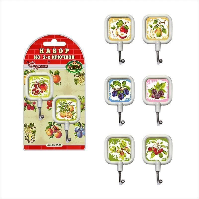 Набор крючков выручит всегда — когда нужно разместить кухонную утварь, развесить полотенца, мочалки, пакеты и многое другое. Самоклеящаяся пленка с обратной стороны позволяет закрепить крючок на любую гладкую поверхность, не нарушая при этом ее целостность. Изготовлено: основание из пластмассы (полипропилен), крючок из хромированной стальной проволоки. Не превышать максимальную нагрузку, указанную на этикетке — 1,5 кг.