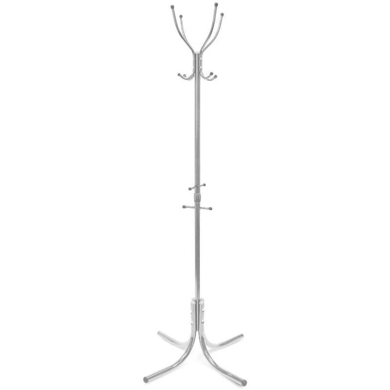 Напольная вешалка из металла предназначена для верхней одежды. Внизу предусмотрены крючки для сумок или зонтов.