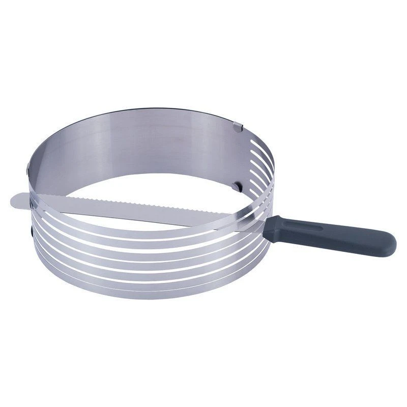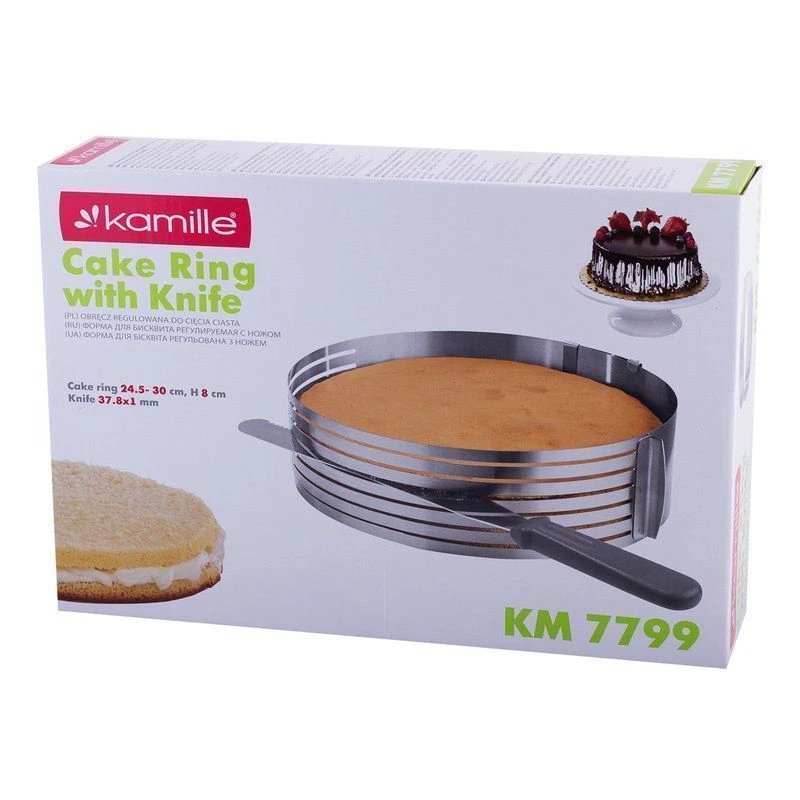 Форма слайсер для нарезки бисквита Kamille - это удобное устройство, которое позволяет нарезать идеально ровные коржи. Все коржи получаются ровными, одинаковой толщины. Процесс нарезания очень прост и времени занимает очень мало.