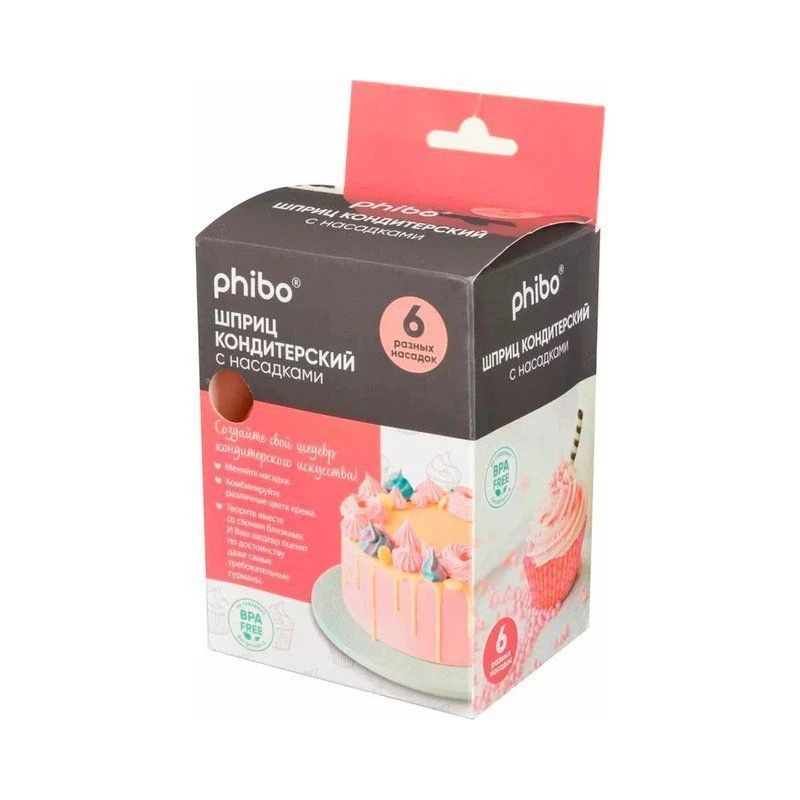 Кондитерский шприц с 6 дополнительными насадками для декорирования тортов, капкейков, пирожных, эклеров и другой выпечки станет незаменимым помощником любой хозяйки. Объем шприца 200мл, мягкая помпа позволяет равномерно выдавливать крем. Комплект имеет самые популярные насадки для крема. Кондитерские насадки для крема и глазури позволяют создавать украшения для торта, пасхального кулича, кексов и десертов. Специальная узкая насадка удобна для наполнения кремом профитролей, эклеров и другой выпечки. Кондитерский шприц выполнен из прочного пищевого пластика, его удобно держать в руке. Насадки накручиваются и крепко фиксируются на крышке благодаря пластиковому переходнику. Кондитерский шприц полностью разбирается, легко моется и не впитывает запахи. Дополнительный плюс - прозрачные стенки, которые позволяют контролировать количество крема внутри.