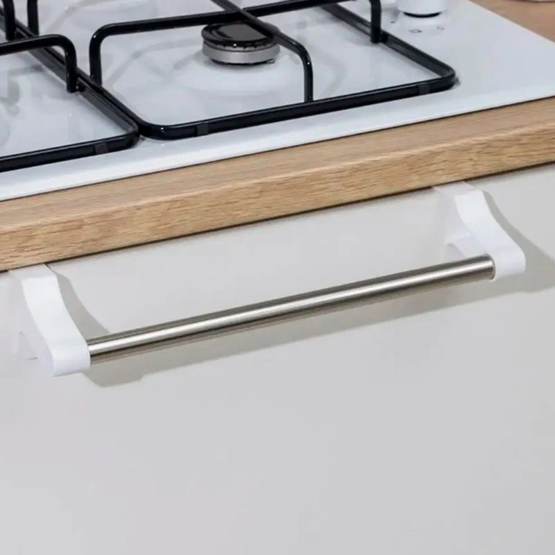 - не требует сверления и применения клейкой ленты — навешивается без дополнительных деталей крепежа прямо на полку или фасад кухонного гарнитура;
