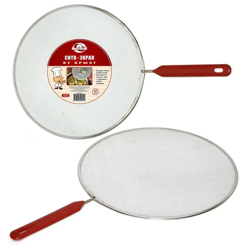 Во время жарки и тушения хочется, чтобы плита и окружающее пространство оставались чистыми. Как добиться чистоты, если летят брызги масла? Обычная крышка – не лучший вариант, поскольку на ней конденсируется пар и блюдо получается недостаточно поджаристым. Чтобы пар выходил, используйте плоское сито «Экран от брызг», с этим приспособлением ваша плита останется чистой и блюдо будет приготовлено по всем правилам. Сито подойдет для любой открытой посуды – сковородок, сотейников.