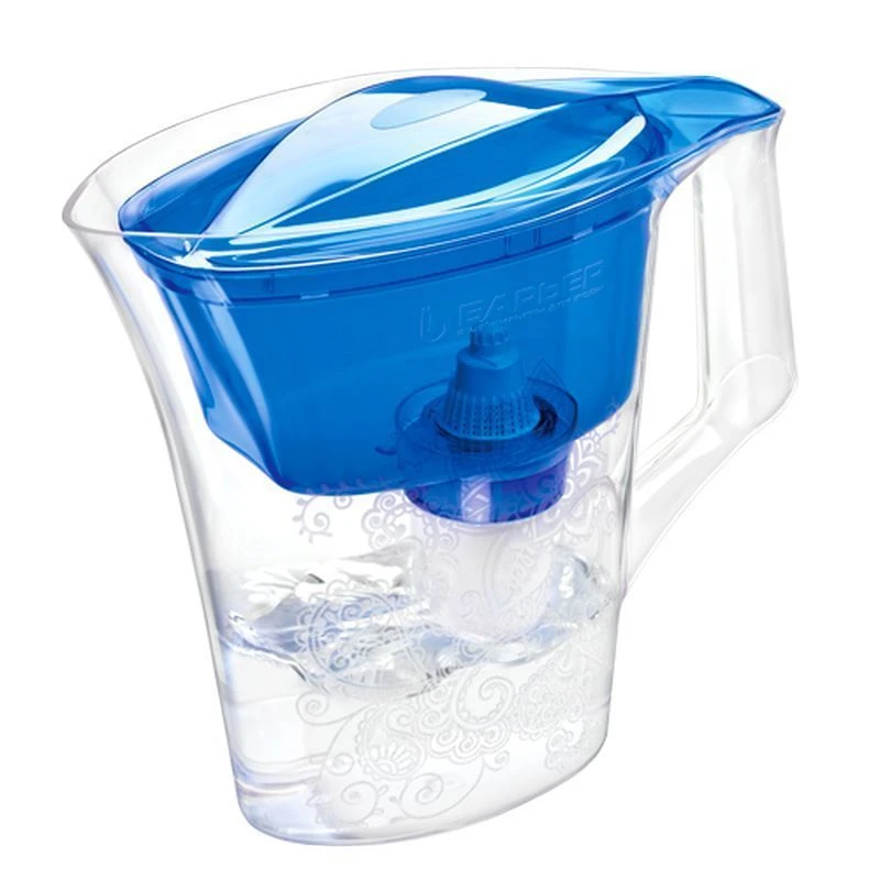 Кувшин изготовлен из безопасных материалов, рекомендованных для контакта с питьевой водой. Эргономичный выступ на крышке кувшина, за который ее удобно открывать и закрывать.