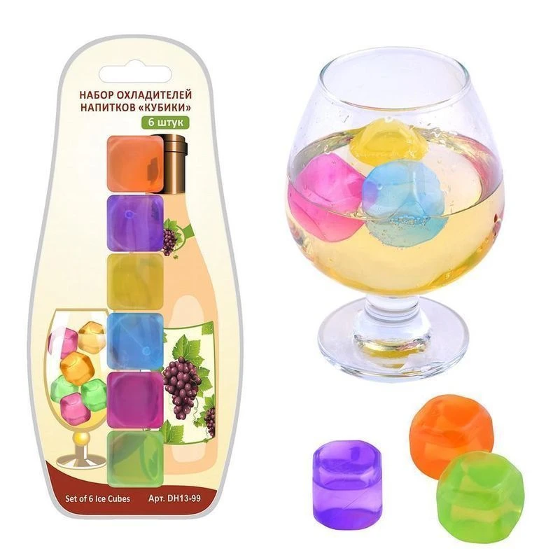 Набор охладителей «Кубики» - отличное решение для повседневного охлаждения напитков и для вечеринок. Яркие многоразовые кубики используются для охлаждения чая, компотов, коктейлей, морсов, соков и других напитков.