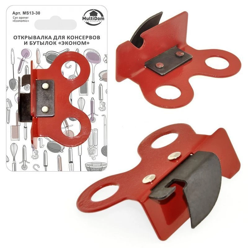 Открывалка предназначена для открывания жестяных консервных банок и бутылок. Компактный размер позволяет брать ее с собой в дорогу, на пикник и т.п. Изготовлено: из металла с эмалевым покрытием.