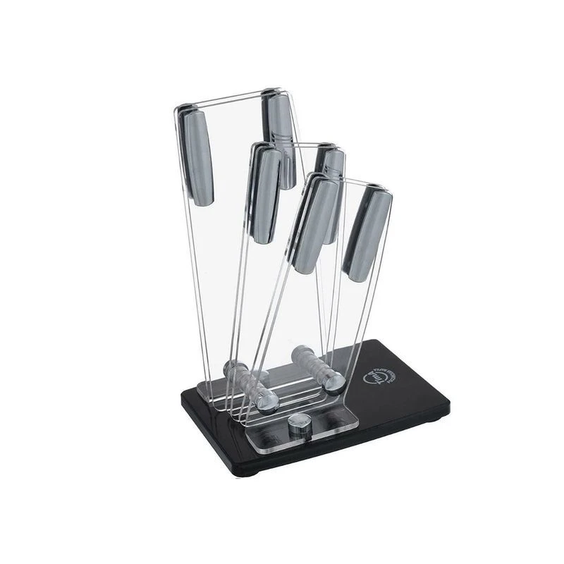 Подставка для ножей выполненная из прочного акрила с элементами из металла. Предназначена для 3 ножей и займет достойное место на вашей кухне, добавив интерьеру оригинальности и изысканности. Она поможет в удобном и безопасном хранении ножей.