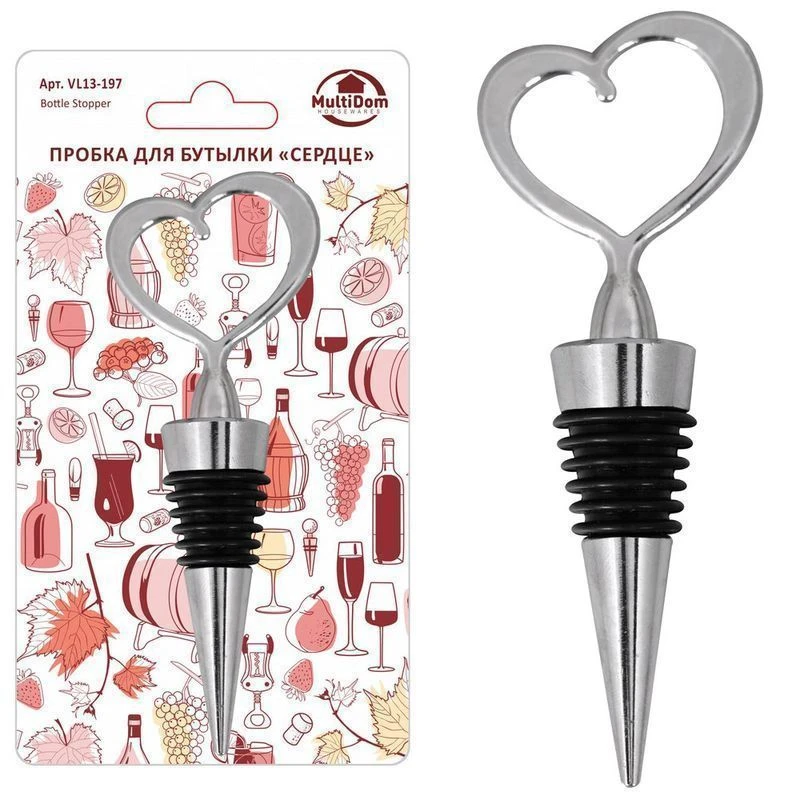 Пробка для бутылки - стильный сувенир на вашей кухне. Многоразовая пробка из стали предназначена для закупоривания открытых бутылок с вином, маслом, уксусом и другими жидкостями. Дизайн стальной пробки в форме сердца привлекает внимание с первого взгляда. Многоразовая пробка для бутылки имеет скошенную конусообразную форму, подходящую для различного диаметра горлышка бутылок, что делает её универсальным практичным предметом. Пробка для бутылок имеет силиконовый ободок - уплотнитель, благодаря которому она плотно фиксируется в горлышке бутылки и защищает, например, содержимое от окисления вина, выветривания, попадания пыли и посторонних запахов. Перед первым использованием и после каждого применения промыть в тёплой воде, можно с жидким моющим средством, сполоснуть проточной водой и просушить. Такая оригинальная пробка для бутылки станет отличным подарком вашим родным и близким.