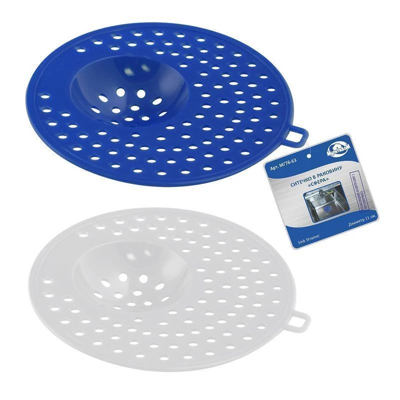 Ситечко в раковину — необходимый аксессуар для современной кухни. Ситечко предотвращает возникновение засоров во время мытья посуды. Изделие просто в установке — достаточно плотно прижать его к сливу. Мелкие отверстия беспрепятственно пропускают воду, при этом задерживают мусор. Чтобы очистить ситечко, подцепите его за край, снимите и вытряхните. Подходит для сливного отверстия диаметром от 50 до 110 мм.