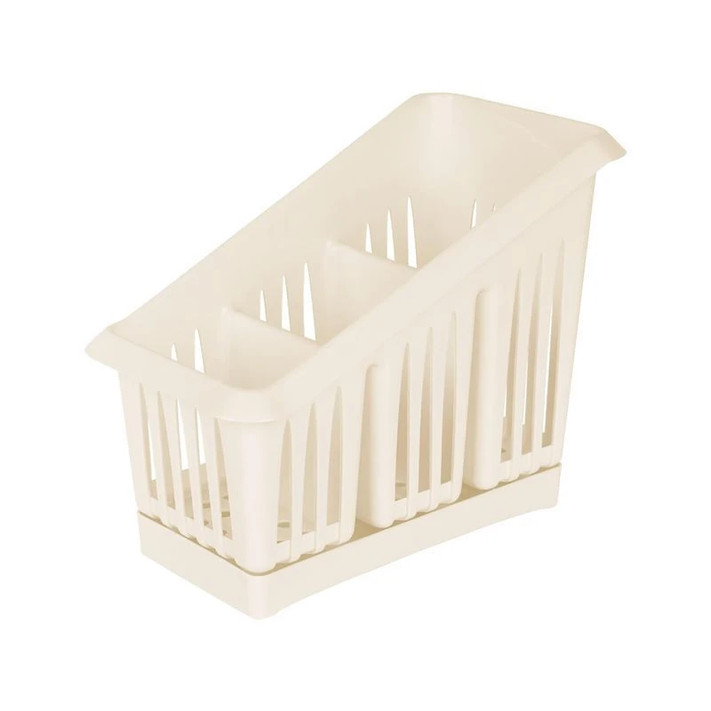 Сушилка для столовых приборов – удобный аксессуар, который позволяет сушить и хранить приборы на кухне. Вы можете разложить ложки, вилки и ножи по-отдельности с помощью трех секций сушилки. Предметы высыхают намного быстрее благодаря дизайну с отверстиями и поддону для стока воды. Прочный пищевой пластик прослужит долгие годы и будет безопасен для здоровья. Сушилку можно использовать как в кухонном шкафу, так и разместить на рабочей поверхности.