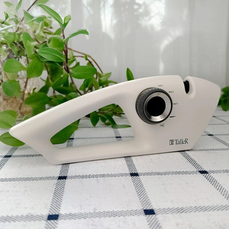 Подходит для всех стальных кухонных ножей и для заточки ножниц. Сменяемые элементы подойдут для заточки различных типов ножей, включая ножи для нарезки хлеба. Корпус выполнен из пищевого пластика. Удобная прорезиненная поворотная ручка переключения. Силиконовые противоскользящие протекторы. Комфортная ручка. 3-х ступенчатая заточка стальных ножей.