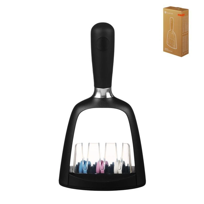 Ножеточка для стальных ножей BY COLLECTION Pevek – компактный эстетичный прибор для заточки ножей из различных типов сталей. Оснащена тремя камнями для заточки в виде роликов, имеющих разную степень зернистости: от грубого абразива до мелкого для финальной заточки и полировки. Осуществляет заточку быстро и легко, а также подходит для правки режущей кромки. Предусмотрена крышка, которая будет защищать заточные камни от пыли пока ножеточка не используется.