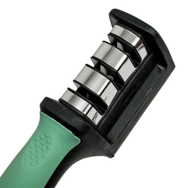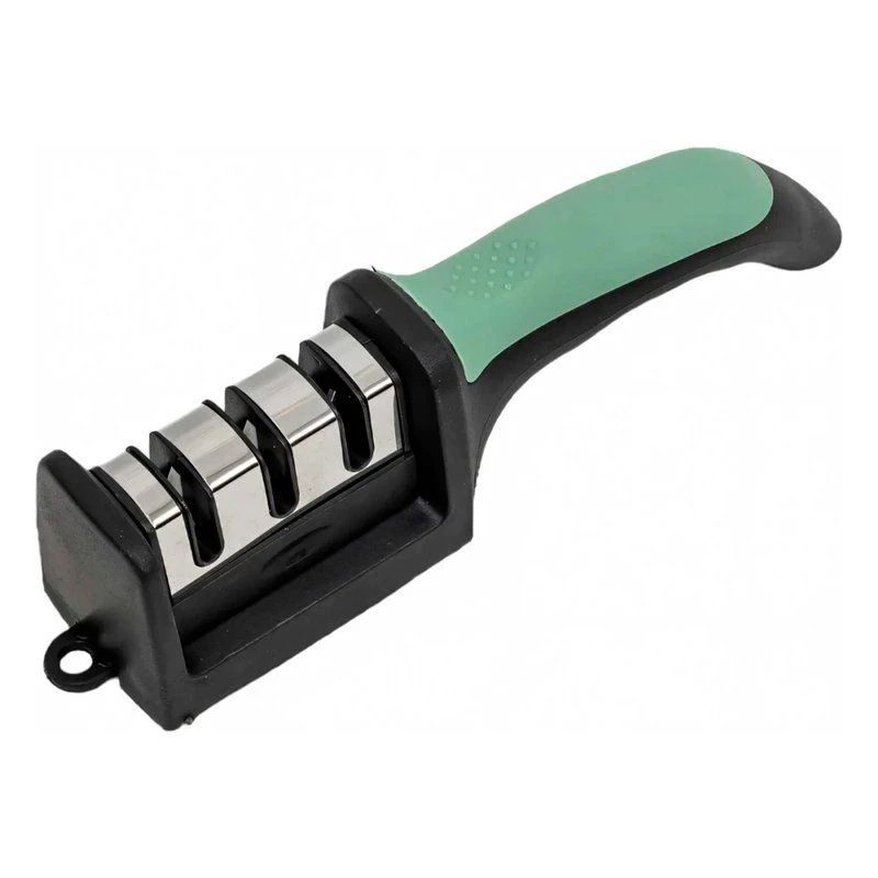 Точилка предназначена для заточки ножей из нержавеющей стали с двусторонней заточкой лезвий. Точилка оснащена тремя точильными элементами и одинаково удобна как для правшей, так и для левшей. Нескользящие вставки на рукоятке и основании точилки, обеспечивают дополнительный комфорт и безопасность использования.