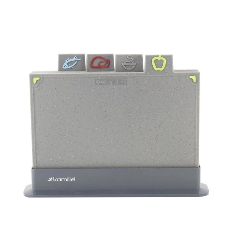 Набор разделочных досок Kamille KM-10073 очень удобен и компактен, благодаря чему отлично впишется в любой интерьер кухни. В комплект входит 4 доски с текстурированной поверхностью созданной специально для определенного типа продуктов, и небольшими бортами, удерживающими сок и крошки нарезаемых продуктов. Доски изготовлены из высококачественного пластика, который не затупляет ножи и при резке не оставляет микроскопических частиц на пище. Силиконовые ножки препятствуют скольжению аксессуара по столешнице. А возможность мыть доски в посудомоечной машине точно порадует любого кулинара.