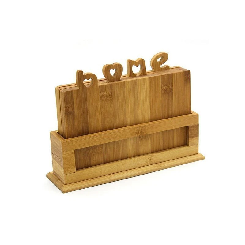 Набор из 4х разделочных досок + подставка. Размер каждой доски 220*165*9 мм. Набор выполнен из бамбука и подойдет для нарезки любых продуктов. Бамбук - экологически чистый материал, он ценится за устойчивость к нагрузкам и влагостойкость. Доски отличаются высокой прочностью, не тупят нож и не впитывают запахи, легко моются, а при длительном использовании не деформируются. Доски выполнены в современном стиле и дополнены декоративными элементами. Во избежание сокращения срока службы и ухудшения внешнего вида не рекомендуется мыть изделия из бамбука в посудомоечной машине, оставлять надолго в воде, а также пересушивать. После мытья необходимо протереть и дать высохнуть.