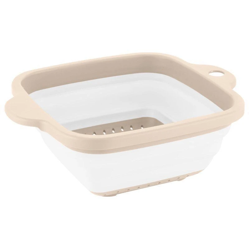 Дуршлаг Sugar&Spice Barberry складной квадратный - аксессуар, который экономит место на кухне и делает готовку проще. Объем 2,2л подходит для повседневных задач и для тех, кто ценит эргономику формы. Уверенный и безопасный захват двумя руками для комфортной работы с большим объемом и горячими продуктами. Разные размеры и форма отверстий - идеальный слив