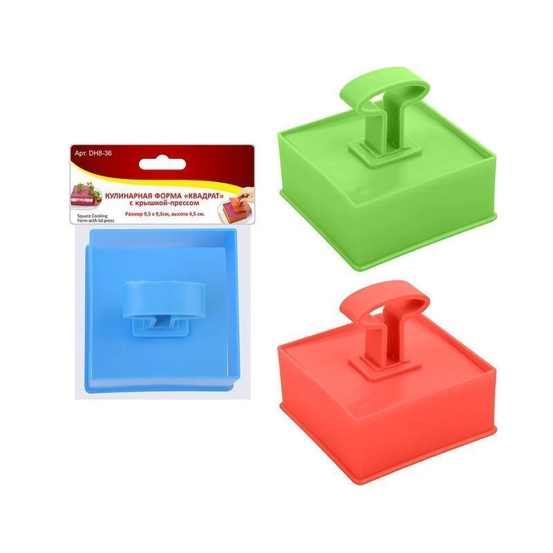 Для выкладки салатов, оформления слоеных блюд и сборки бутербродов используйте кулинарную форму «Квадрат». С этим приспособлением ваши блюда будут выглядеть презентабельно, как в ресторане. Можно использовать для салатов, закусок, а также для создания сладких пирожных. Размер изделия 9,5х9,5х4,5 см, в комплект входит крышка, которая придает форму продуктам или помогает выталкивать готовое блюдо. Приспособление изготовлено из пластмассы (полипропилена). После применения промывается губкой с использованием жидких моющих средств.