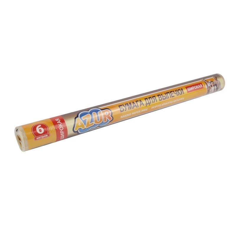 Двусторонняя, непригорающая бумага для выпечки — не прилипает противню и к кондитерским изделиям. При использовании пергаментной бумаги исчезает необходимость смазывать противень маслом и мыть его после приготовления пищи. Бумагу для выпекания можно использовать в духовом шкафу и микроволновой печи при температуре до 220 градусов. Большая ширина бумаги позволяет ее использовать для широких противней. В бумагу можно заворачивать бутерброды, или использовать ее для декорирования и декупажа.