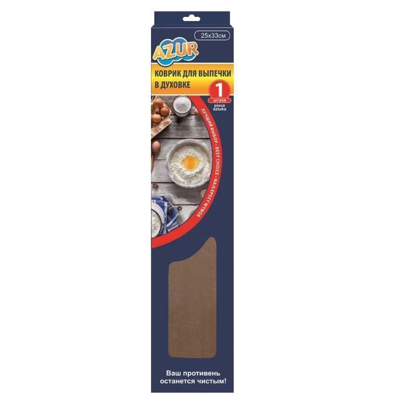 Тефлоновый антипригарный коврик для выпечки в духовке позволит приготовить вкусную, богатую витаминами и минеральными веществами, пищу. Двусторонний коврик можно использовать с любой стороны без добавления масла. Готовые изделия легко отделяются, не теряя формы. При необходимости легко моется водой с любым моющим средством. Для удобства использования коврик можно самостоятельно обрезать, придав ему нужный размер. Жаростойкость до +260 градусов, кратковременно — до +300 градусов.