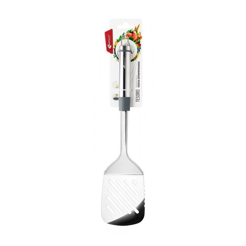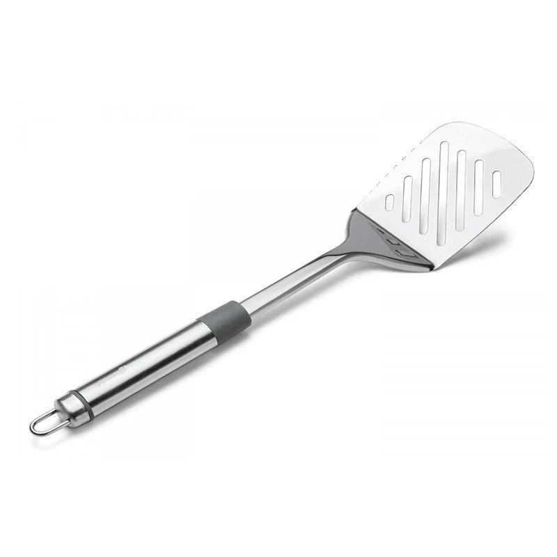 Лопатка предназначена для перемешивания и переворачивания продуктов в процессе жарки или тушения, а также подачи готовых блюд. Прорези на лопатке позволяют стекать излишкам масла, соуса или жидкостей. Изделие имеет петлю для подвешивания в любое место на кухне.Рекомендуется ручная мойка