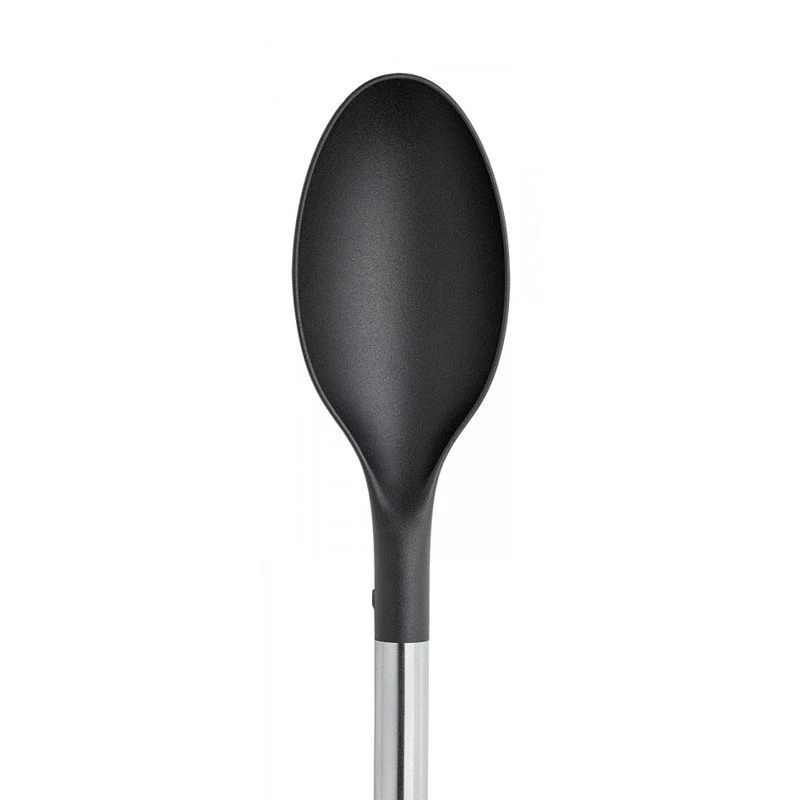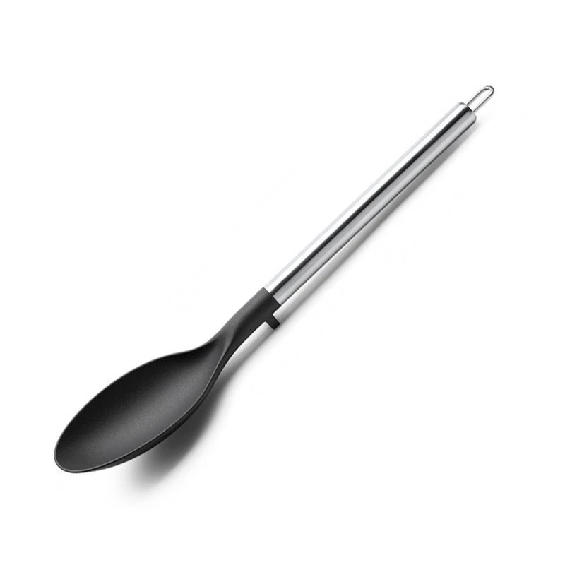 Ложка предназначена для перемешивания продуктов в процессе варки, жарки или тушения, для извлечения продуктов из супов и бульонов, для подачи готовых блюд. Изделие прекрасно подойдет для посуды с антипригарным, тефлоновым или керамическим покрытием. Рабочая часть ложки выполнена из пищевого пластика и выдерживает температуру до 220С. Можно мыть в посудомоечной машине.