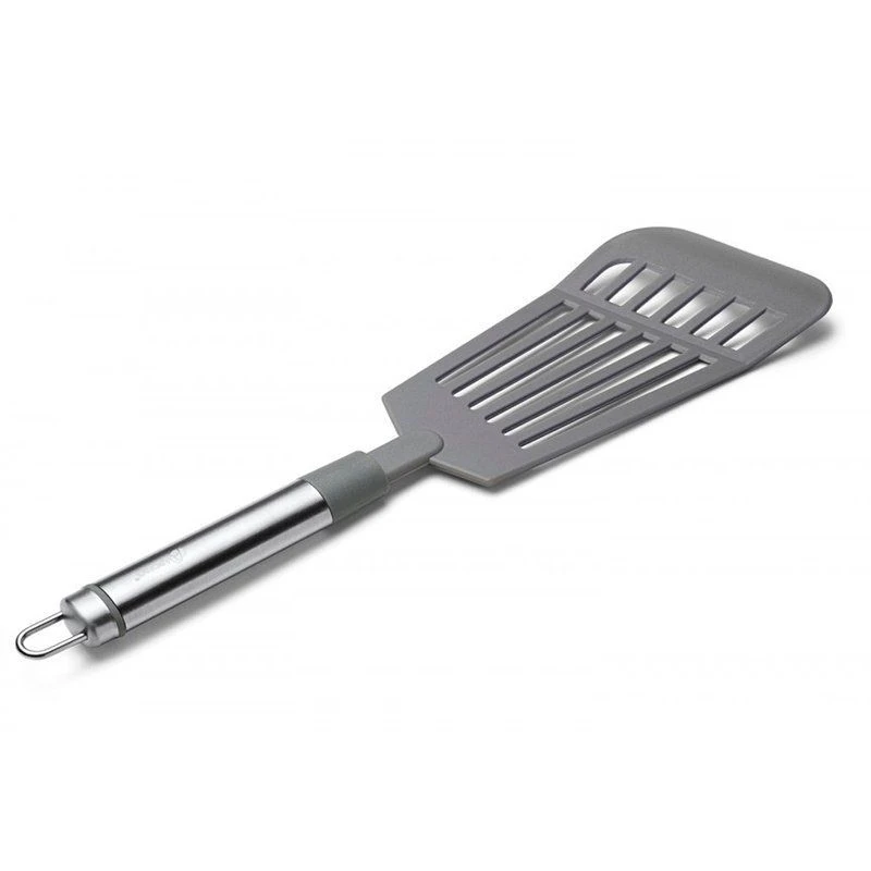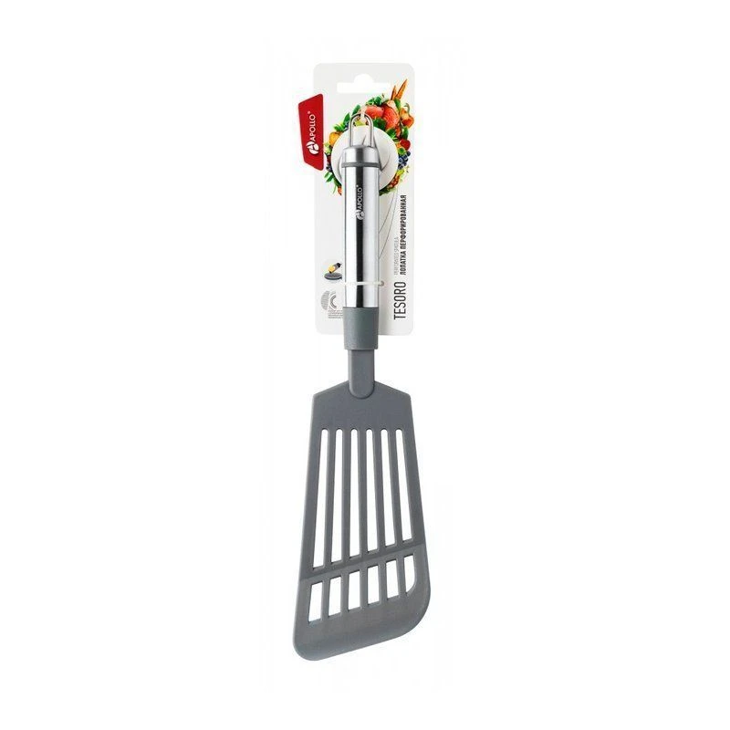 Лопатка изготовлена из пищевого пластика и выдерживает температуру до 180. Лопатка предназначена для перемешивания и переворачивания продуктов в процессе жарки или тушения, а также подачи готовых блюд. Прорези на лопатке позволяют стекать излишкам масла, соуса или жидкостей. Изделие прекрасно подойдет для посуды с антипригарным, тефлоновым или керамическим покрытием. Лопатка имеет петлю для подвешивания в любое место на кухне.Рекомендуется ручная мойка.