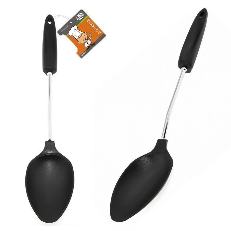 Предназначена для перемешивания готовящихся горячих блюд (супов, овощных смесей, грибов, киселей, морсов, компотов, соусов, каш, пюре). Изготовлена: рабочая часть из пластмассы (нейлон), ручка из хромированной стали и пластмассы. После применения вымыть с использованием жидких моющих средств.