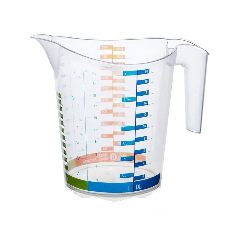 Кружка мерная пластиковая имеет легкий вес за счёт самого материала, из которого она производится. Выполнено изделие из плотного пищевого пластика (не содержит бисфенол А), что делает его абсолютно безопасным для здоровья. Высокая прочность изделия характеризуется тем, что оно при падении не разобьётся и не треснет. Прозрачные стенки кружки мерной пластиковой позволяют с точностью отмерить количество нужного продукта в граммах или литрах.