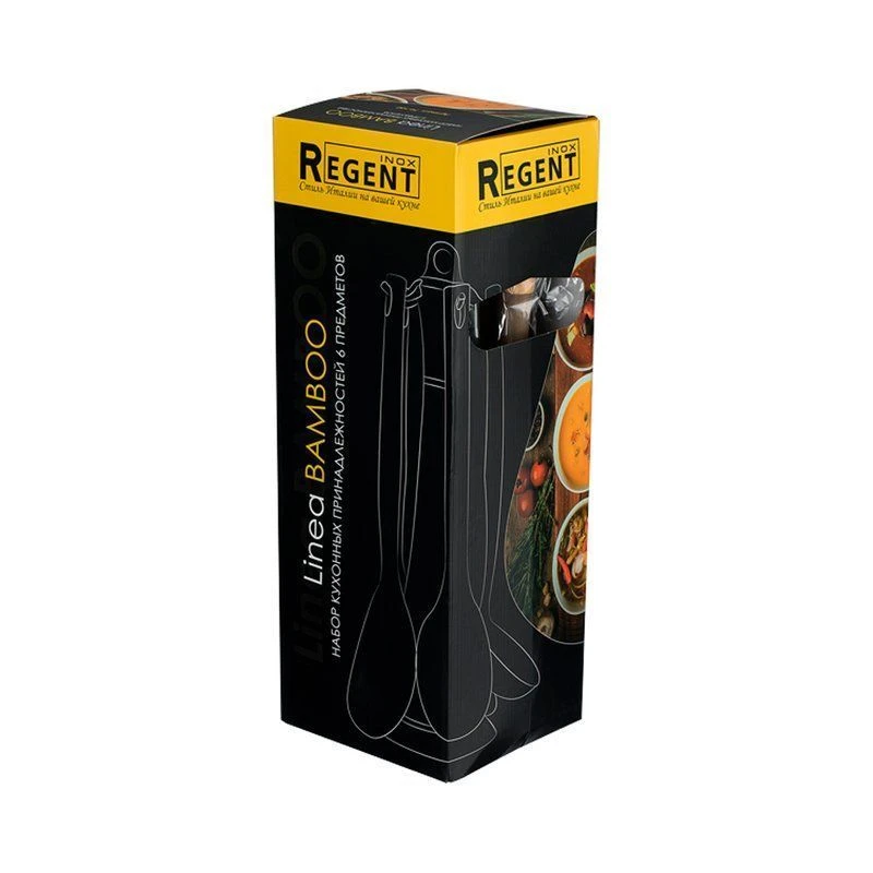 Комплектация товара Набор кухонных принадлежностей REGENT INOX Linea BAMBOO 6 предметов, на подставке (74-102) зависит от конкретной поставки и может меняться поставщиком без предварительного уведомления!