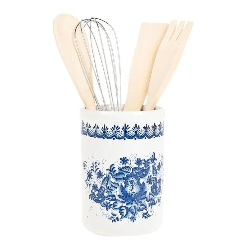 Подставка с набором кухонных принадлежностей выполнена из высококачественной доломитовой керамики и декорирована красочным изображением. В наборе 5 предметов: подставка из доломита, деревянная ложка, деревянная вилка, деревянная лопатка и металлический венчик. Такой замечательный функциональный набор обязательно понравится каждой хозяйке и украсит любую кухню.