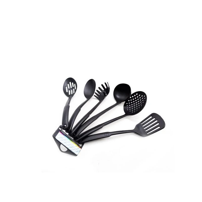 Набор кухонных принадлежностей из нейлона без подставки - это прекрасный подарок. В набор входит половник, ложка с отверстиями, ложка для соусов, ложка для пасты, шумовка, лопатка с отверстиями.