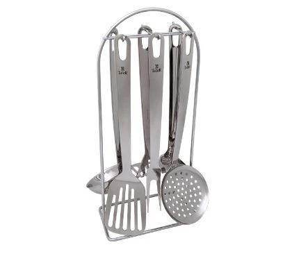 В наборе: половник, ложка поварская, шумовка, вилка поварская, картофелемялка, лопатка перфорированная.