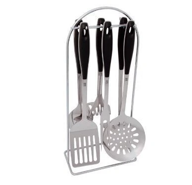 В наборе: половник, ложка поварская, шумовка, вилка поварская, картофелемялка, лопатка перфорированная.