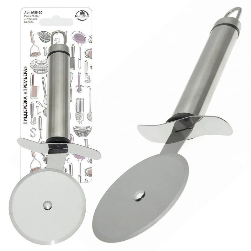 Для разрезания пиццы, теста для пельменей и чебуреков используйте дисковую пиццерезку «Премьера». Этот нож отлично справляется тонким тестом, имеет удобную конструкцию и хорошо лежит в руке. При разрезании пиццы, главное сохранить внешний вид блюда, не размазав сыр и начинку, поэтому пиццерезка — оптимальный вариант для итальянского лакомства. Модель выполнена из нержавеющей стали, а также оснащена специальной петелькой для сушки и хранения. После использования промойте изделие с жидкими моющими средствами и высушите.