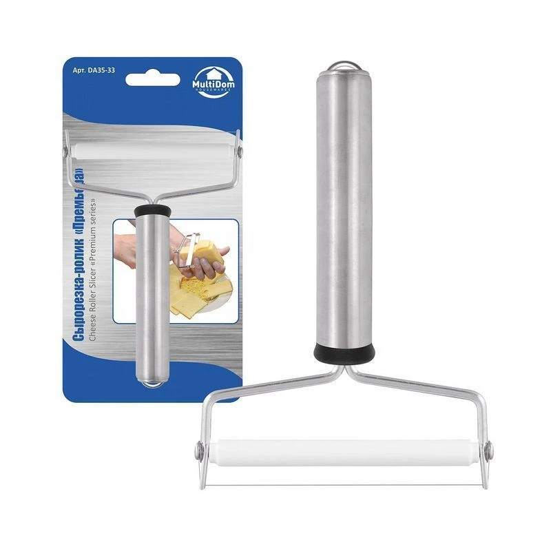 Со струнной сырорезкой гораздо проще приготовить бутерброды и закуски – ломтики получаются аккуратными, одинаковыми по толщине. Рабочая часть состоит из ролика и струны. Ролик плавно перемещается по кусочку сыра, делая нарезку струной проще и легче. Струнная сырорезка безопасна, поскольку не имеет остро заточенных лезвий. Изготовлено: ручка и струна из коррозионностойкой (нержавеющей) стали, ролик из пластмассы (ABS). Размер 14,5х11см