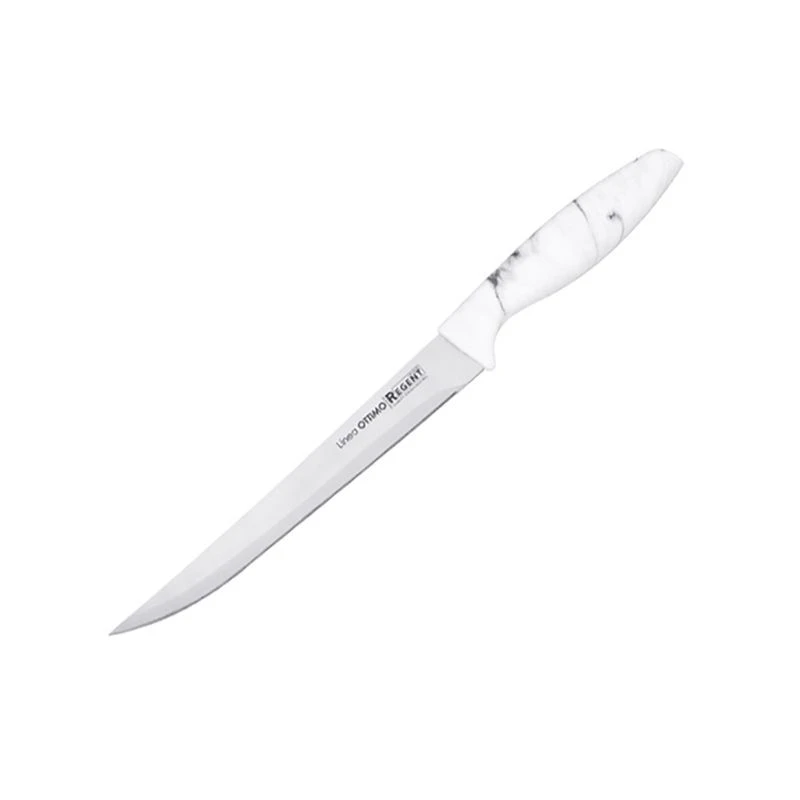 Нож с заостренным клинком облегчает работу с птицей, мясом и рыбой. Узкое лезвие длиной 20 см помогает аккуратно отделять филе от костей. Разделочный нож легко измельчает ингредиенты на кусочки нужного размера, разрезает мясо с жилами.