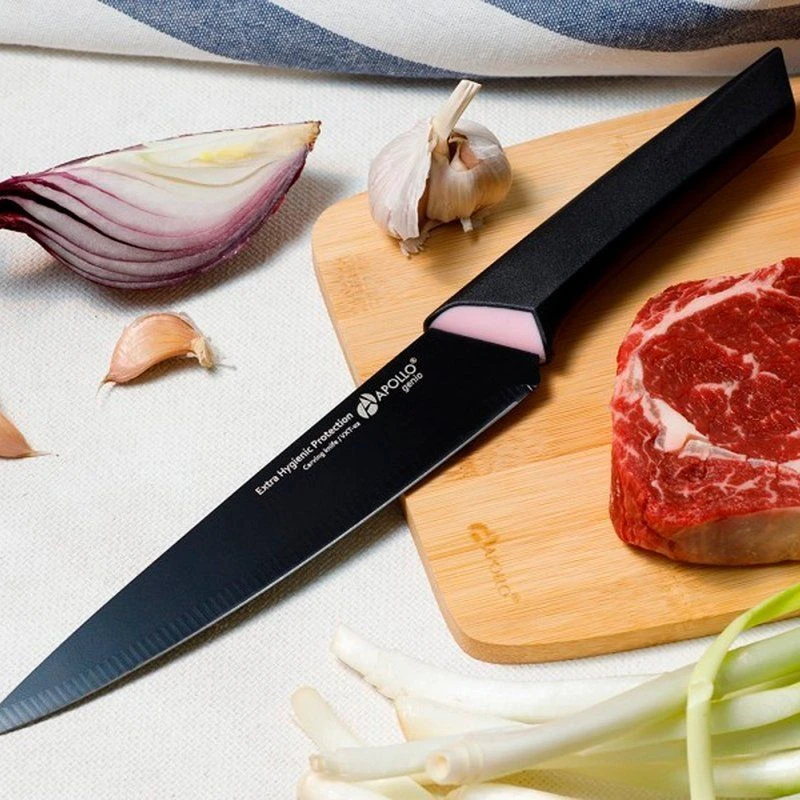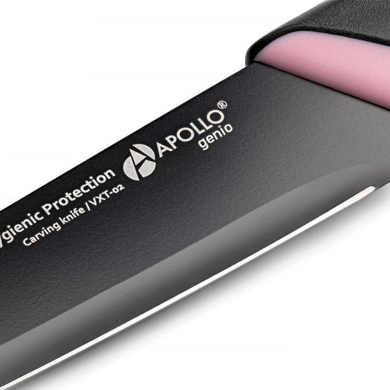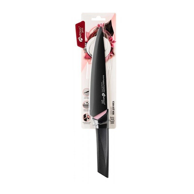 Нож предназначен для чистки овощей- фруктов и нарезки продуктов. Лезвие ножа имеет стойкое покрытие, которое уменьшает контакт продуктов со сталью, предотвращая процесс окисления и помогая сохранить полезные свойства продуктов. Специальная форма рукоятки не позволяет ножу выскальзывать из руки во время использования.