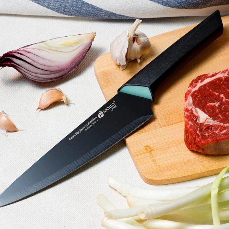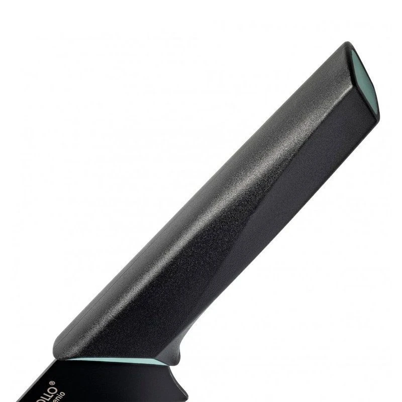 Нож предназначен для чистки овощей- фруктов и нарезки продуктов. Лезвие ножа имеет стойкое покрытие, которое уменьшает контакт продуктов со сталью, предотвращая процесс окисления и помогая сохранить полезные свойства продуктов. Специальная форма рукоятки не позволяет ножу выскальзывать из руки во время использования.