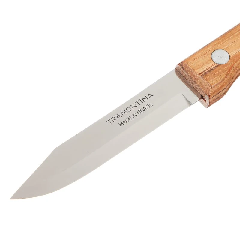 Представляем вам овощной нож Tramontina Dynamic с лезвием длиной 8 см, изготовленный из нержавеющей стали AISI 420. Ручка сделана из натурального дерева, благодаря чему нож лежит в руке удобно и не скользит. Этот нож идеально подходит для нарезки овощей любой формы и размера. Маленький нож удобен для нарезки и чистки овощей и фруктов от кожуры. Благодаря элегантному дизайну, нож станет не только функциональным, но и стильным аксессуаром для вашей кухни.