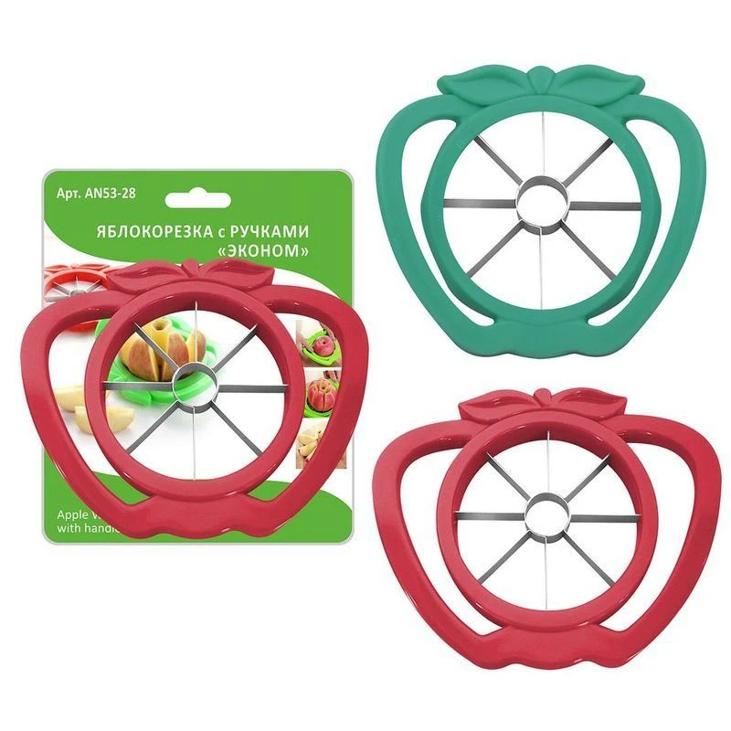 Как быстро нарезать яблоко и удалить сердцевину? С использованием яблокорезки с ручками этот процесс превратится в удовольствие. Приспособление поможет вам разрезать яблоко одновременно на 8 долек, при этом сердцевина останется отдельно. Это очень удобно, когда нужно порезать фрукты для угощения, для детей или перед приготовлением компотов, варенья и других заготовок. Поставьте яблоко на горизонтальную поверхность, прижмите инструмент так, чтобы центр оказался в области сердцевины. С усилием надавите и ваши дольки готовы! После использования промойте инструмент в проточной воде с жидкими моющими средствами. Храните в сухом месте. Изготовлено: рабочая часть из коррозионностойкой (нержавеющей) стали, корпус из пластмассы (ABS).