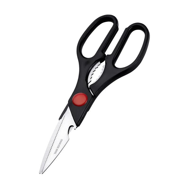 Кухонные ножницы сочетают в себе многофункциональность, легкость в использовании и классический дизайн. Они изготовлены из качественной нержавеющей стали и пластика, поэтому изделие долго служит и не тускнеет с годами. Этот прочный и надежный аксессуар легко справится с любыми видами нарезания. Также ножницы прекрасно подойдут для курицы, рыбы, мяса и других продуктов. Данная посуда отлично подходит для ежедневного использования. Такое нужное изделие обязательно займёт достойное место среди аксессуаров на вашей кухне.