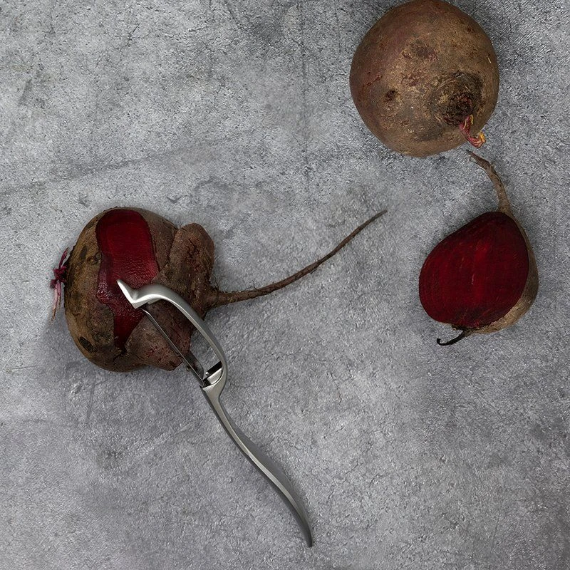 Стильный внешний вид, качество изготовления и красивое матовое покрытие. Овощечистка подходит для правой и левой руки. Лезвие плавающее двухстороннее, позволяет чистить продукты как на себя, так и от себя. Овощечистка с поперечным лезвием подойдет для очистки овощей и фруктов. Тонкий срез кожуры. Можно использовать овощечистку, чтобы нарезать продукты слайсами.