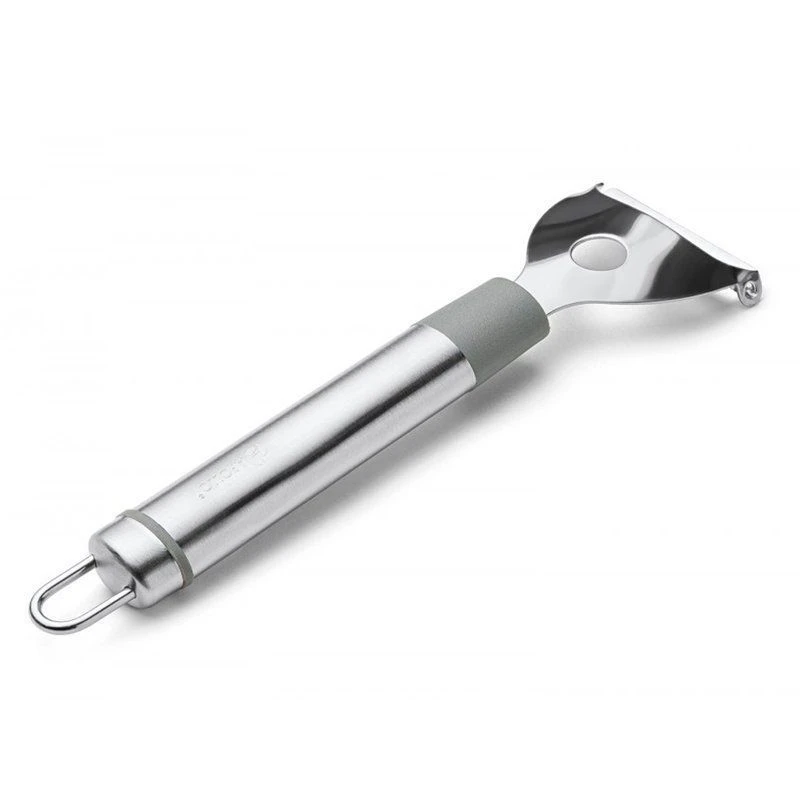 Овощечистка предназначена для аккуратного удаления кожуры с овощей и фруктов. Изделие подходит для правшей и левшей благодаря двухсторонней заточке лезвия. Овощечистка имеет петлю для подвешивания в любое место на кухне.Рекомендуется ручная мойка.