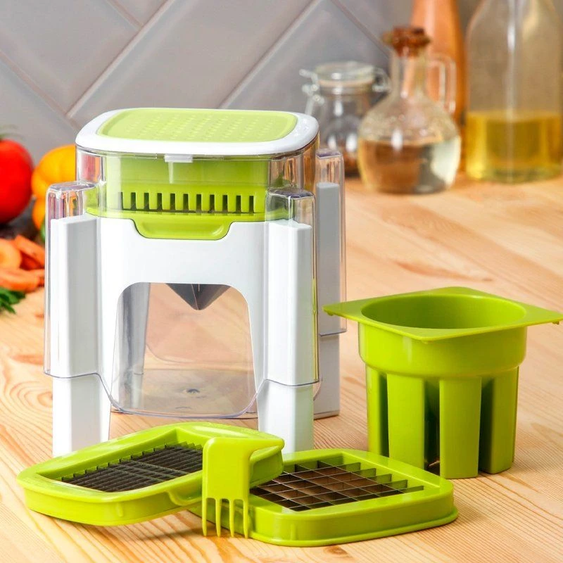 Три сменные насадки: выбирайте нужную насадку для любого способа нарезки – от тонкой соломки до крупной кубической. Экспериментируйте с текстурой и формой ваших блюд! Идеально подходит для приготовления картофеля фри, овощей, фруктов или сырных палочек.